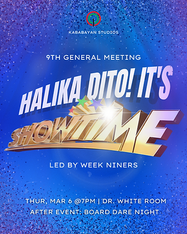 Kababayan's Spring Quarter ninth meeting program: Halika Dito! It's Showtime hosted by selected general members.